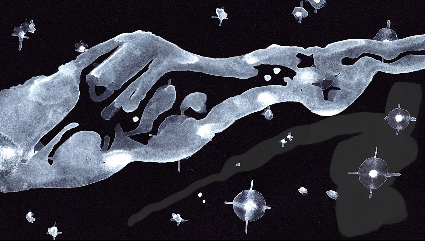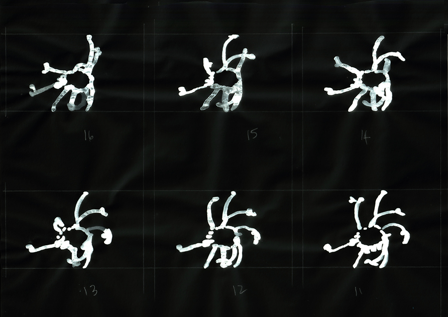 BlindLight/WhiteNoise (original frame by frame drawings), watercolour, pencil, on paper, 29.7 x 21 cms. Quantity 90 sheets, 2016